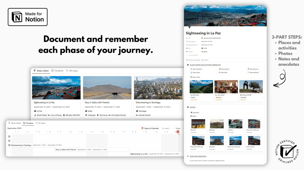 I worked tirelessly to create the ultimate Notion template that would help you plan trips, document your adventures, and keep track of your travel experiences without feeling overwhelmed.