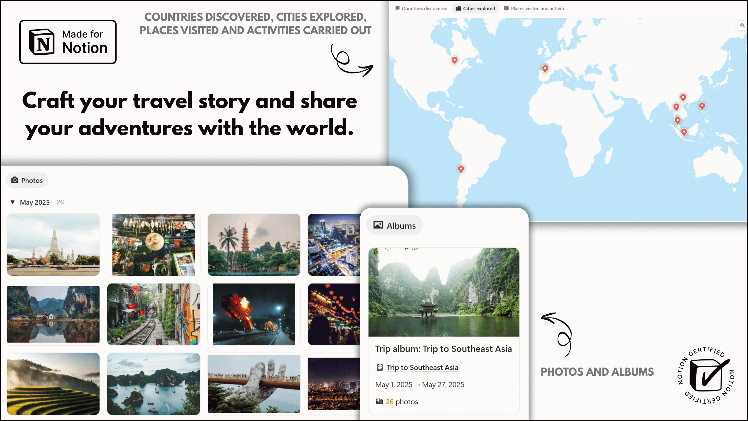 ✅ Where to showcase your travel photos and turn them into albums to relive those memories and share your adventures with the world (cf. 5th dashboard).