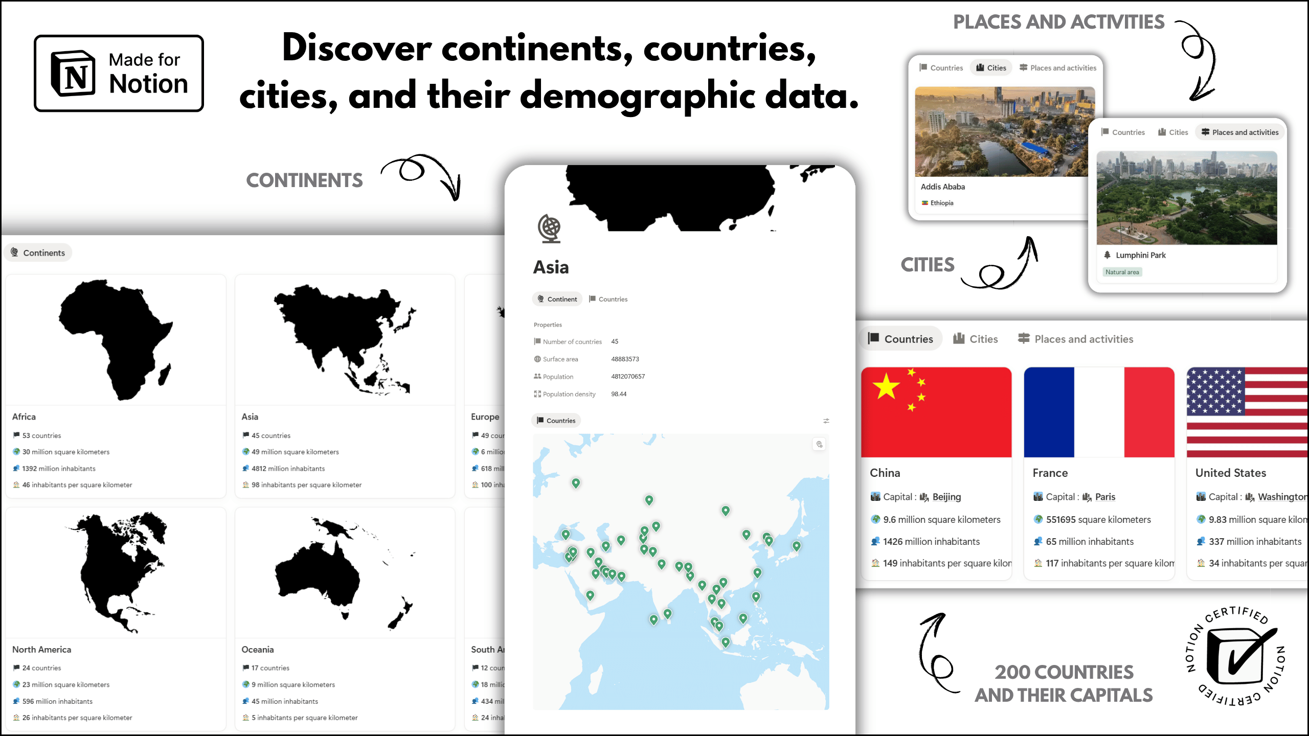 ✅ The exact system to explore and learn about the cities, countries and continents you visit.