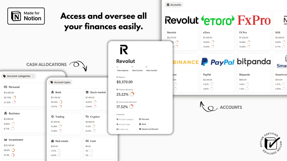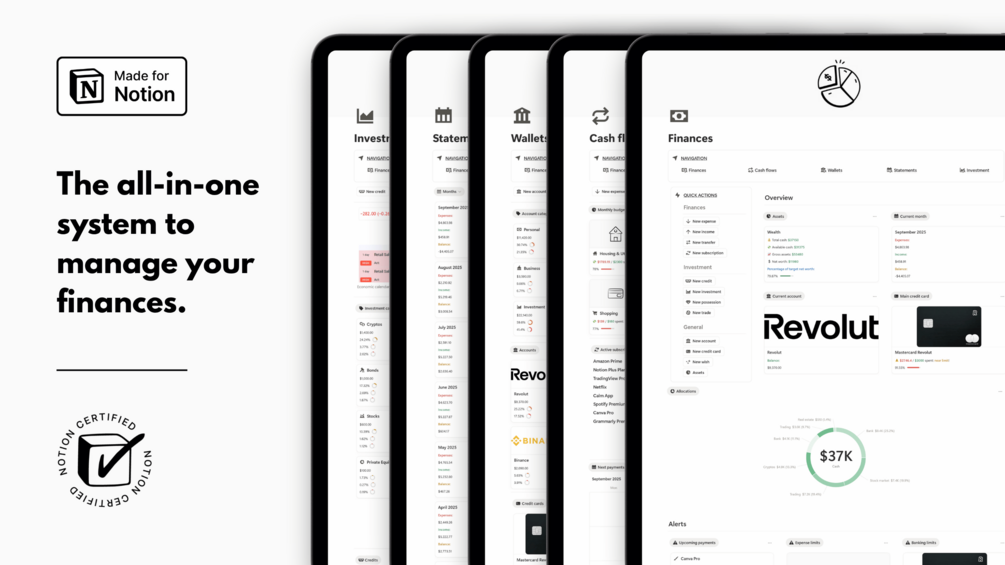 - You give up on using Notion, hence missing out on the most effective organization digital tool on the market. You'll continue hopping from one money management app to another in search of the "perfect one" instead of committing to a centralized, turnkey system. Months, if not years, could go by, and you'll keep struggling with financial confusion, poor spending habits, and the stress of never having a clear picture of your money.