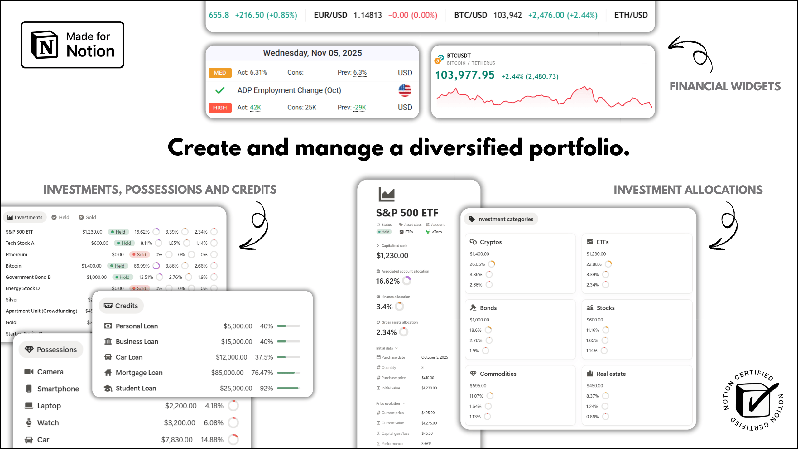 ✅ The one system to oversee all your investments, possessions, trades and credits in a single location, while assessing how your assets and liabilities affect your net worth and portfolio allocations (formulas provided).