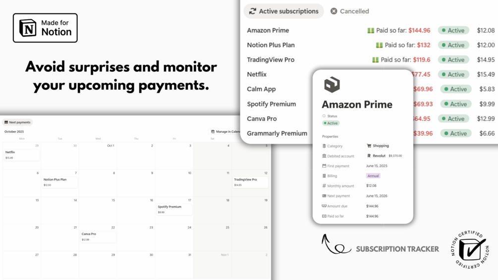 ✅ Avoid last-minute surprises by staying informed about upcoming subscription payments and their amounts.
