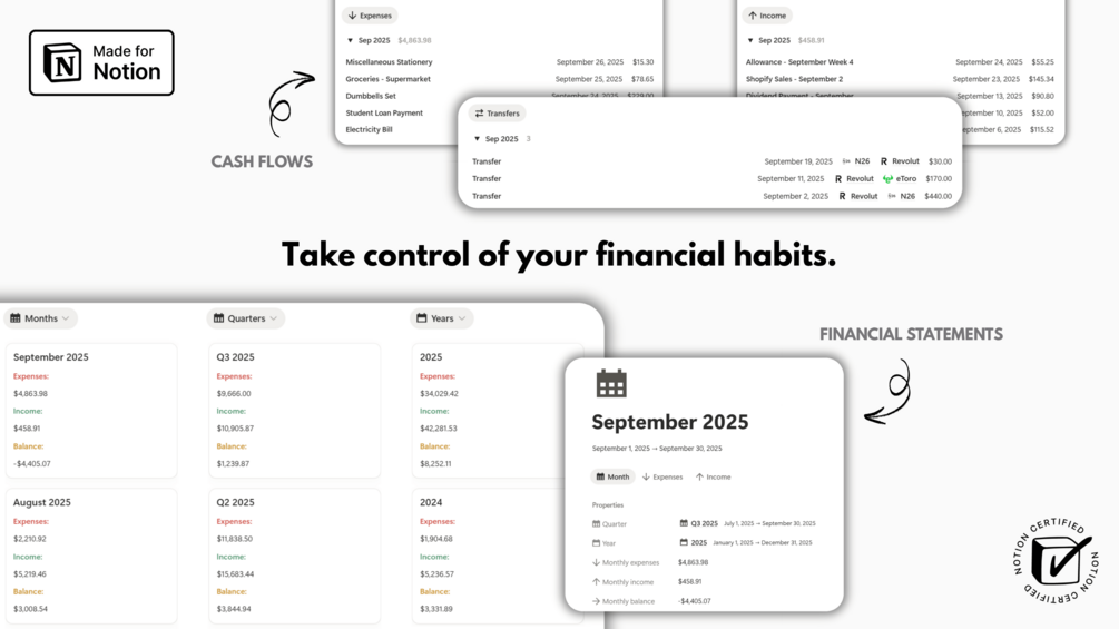 ✅ The 3 must-have databases to take control of your financial habits and gain clarity on where your money flows.