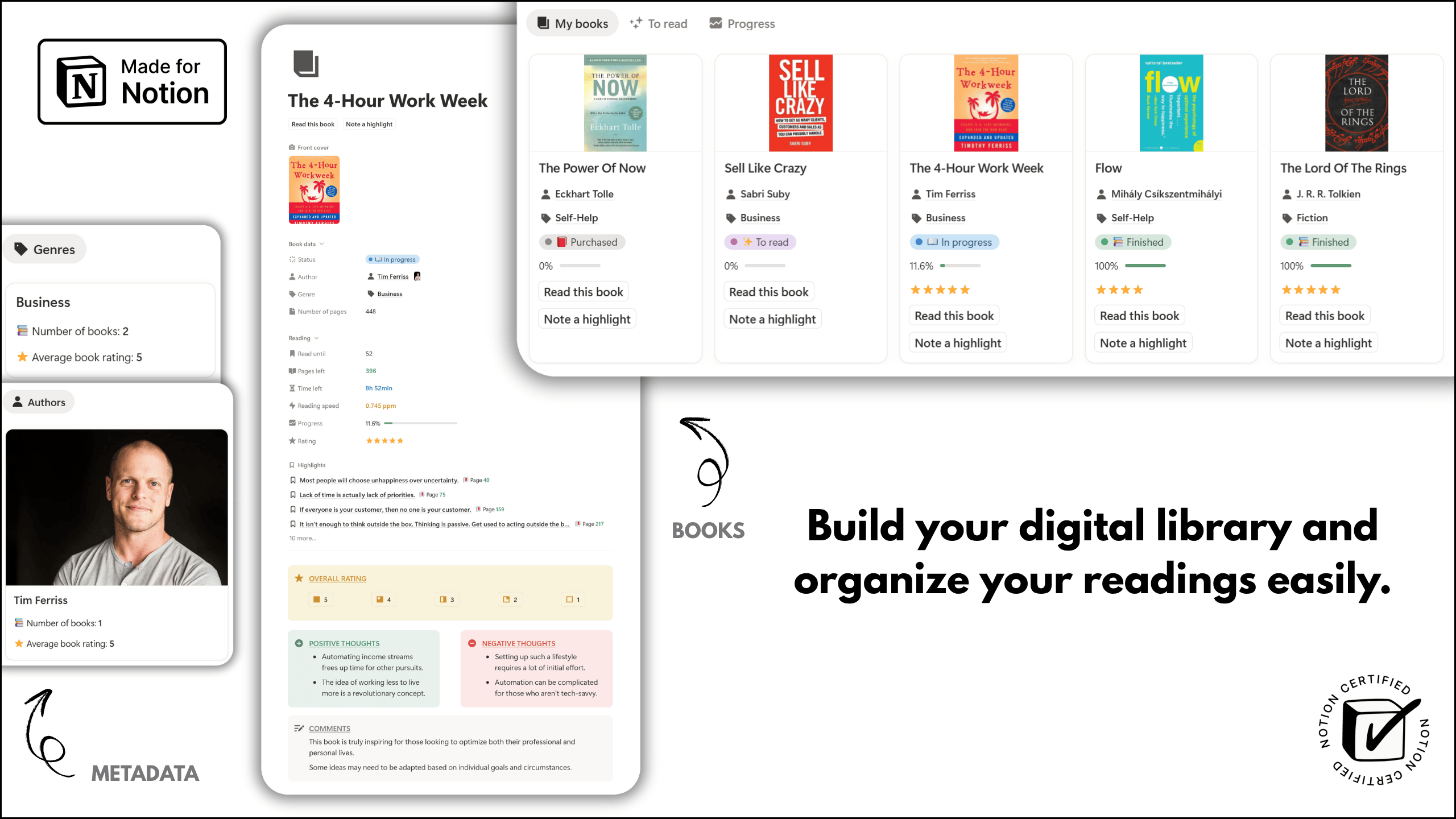 ✅ Build your reading list to capture and keep notes and reflections on your favorite books.