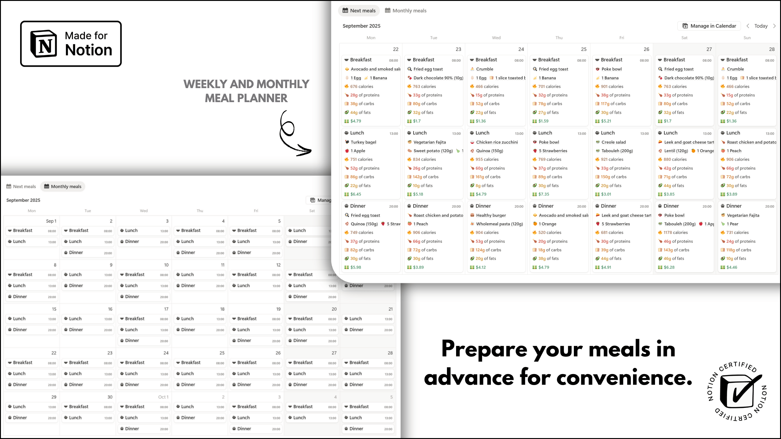 - You give up on using Notion, hence missing out on the most effective organization digital tool on the market. You'll continue hopping from one nutrition app to another in search of the "perfect one" instead of committing to a centralized, turnkey system. Months, if not years, could go by, and you'll keep struggling with inconsistent eating habits, lack of meal planning, and the frustration of never reaching your health goals.