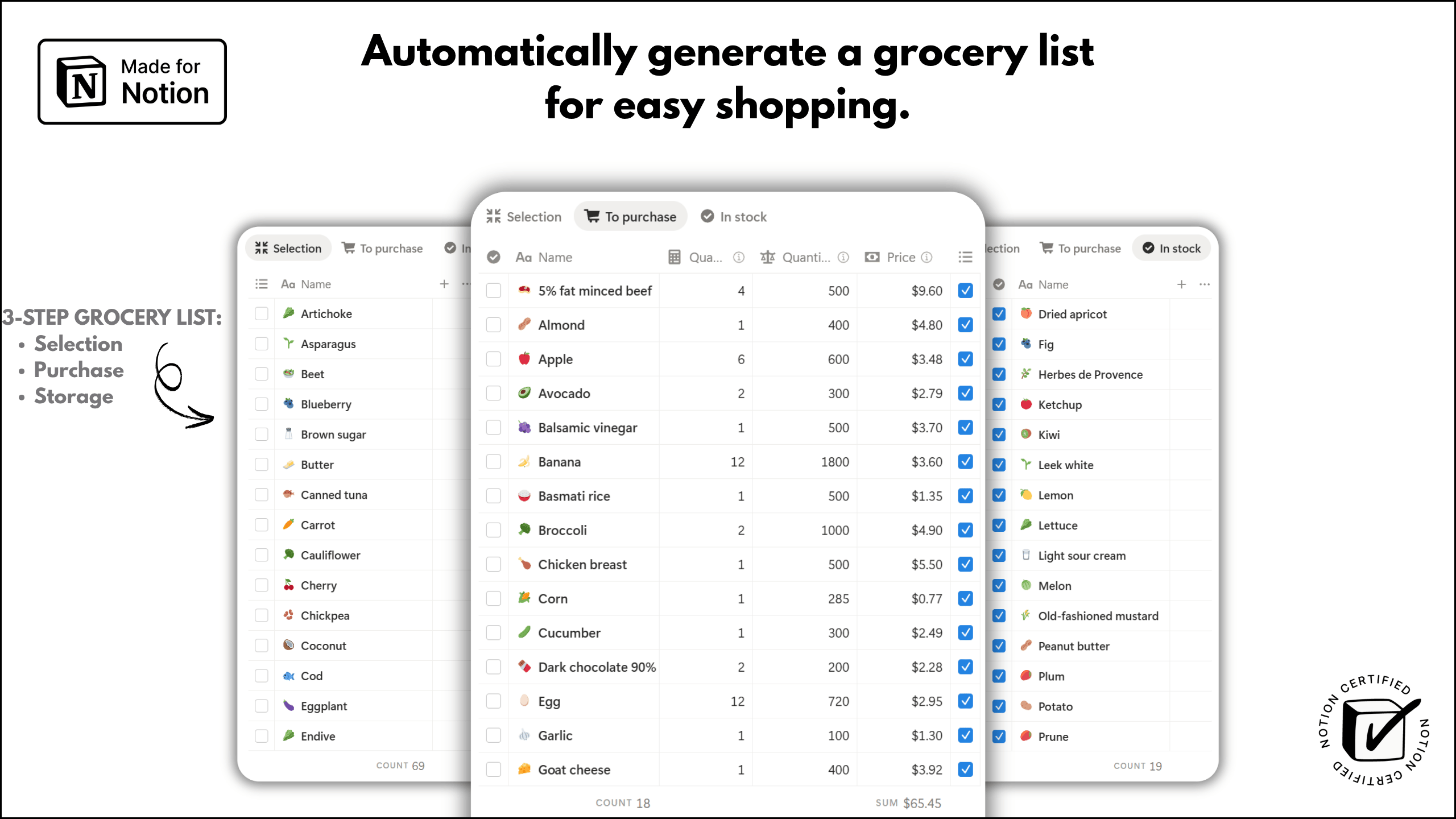 ✅ How to generate and automate your grocery lists without forgetting any of your favorite ingredients (and make sure you stay within budget).