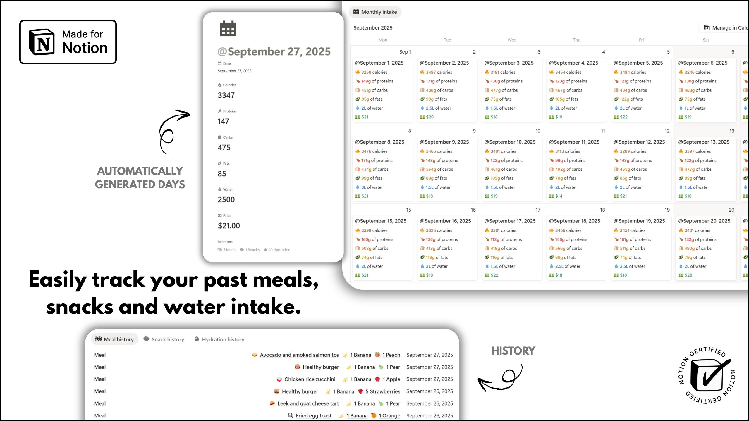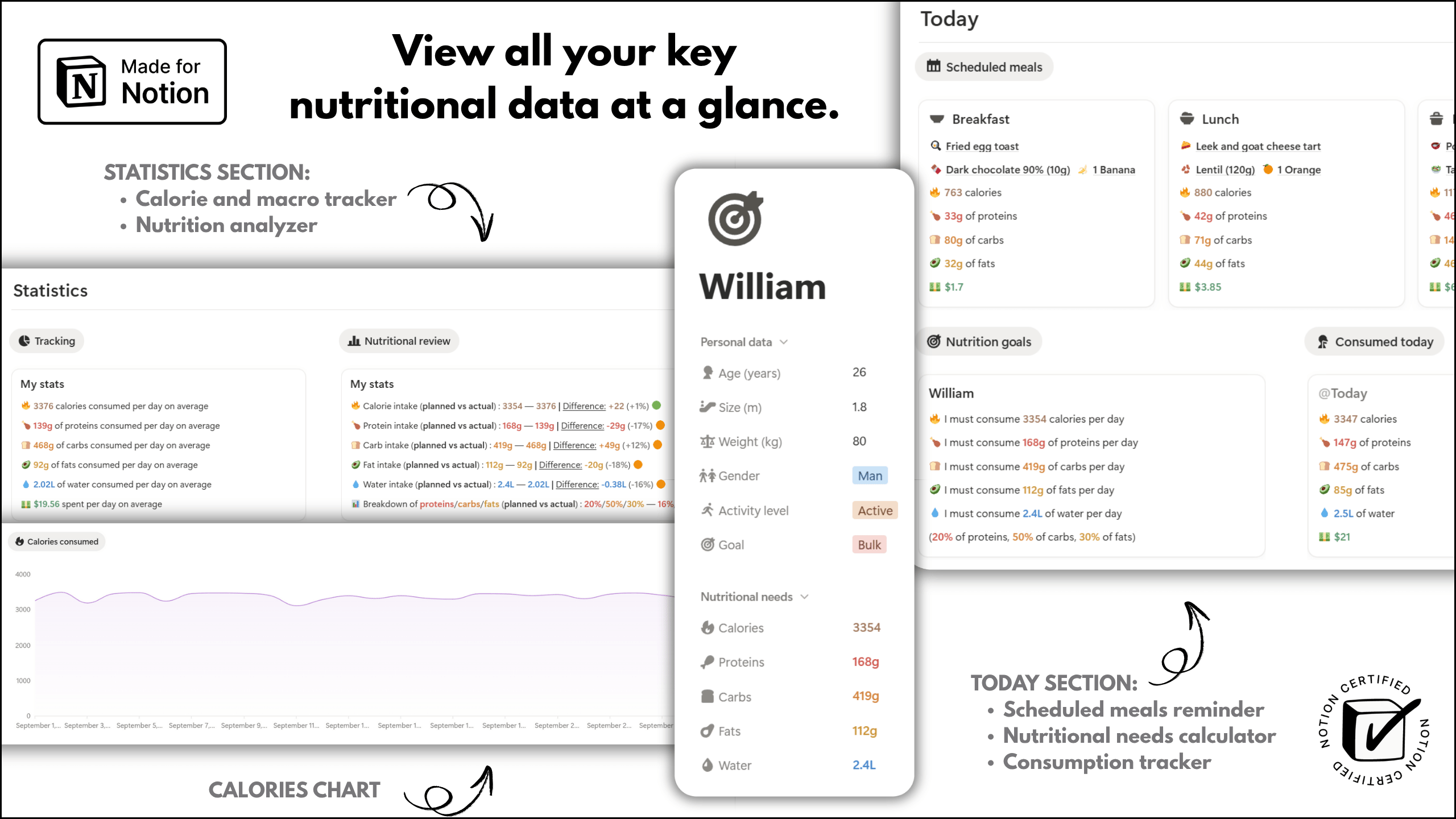 ✅ How to track your daily food AND water intake in just one click (cf. 5th dashboard).