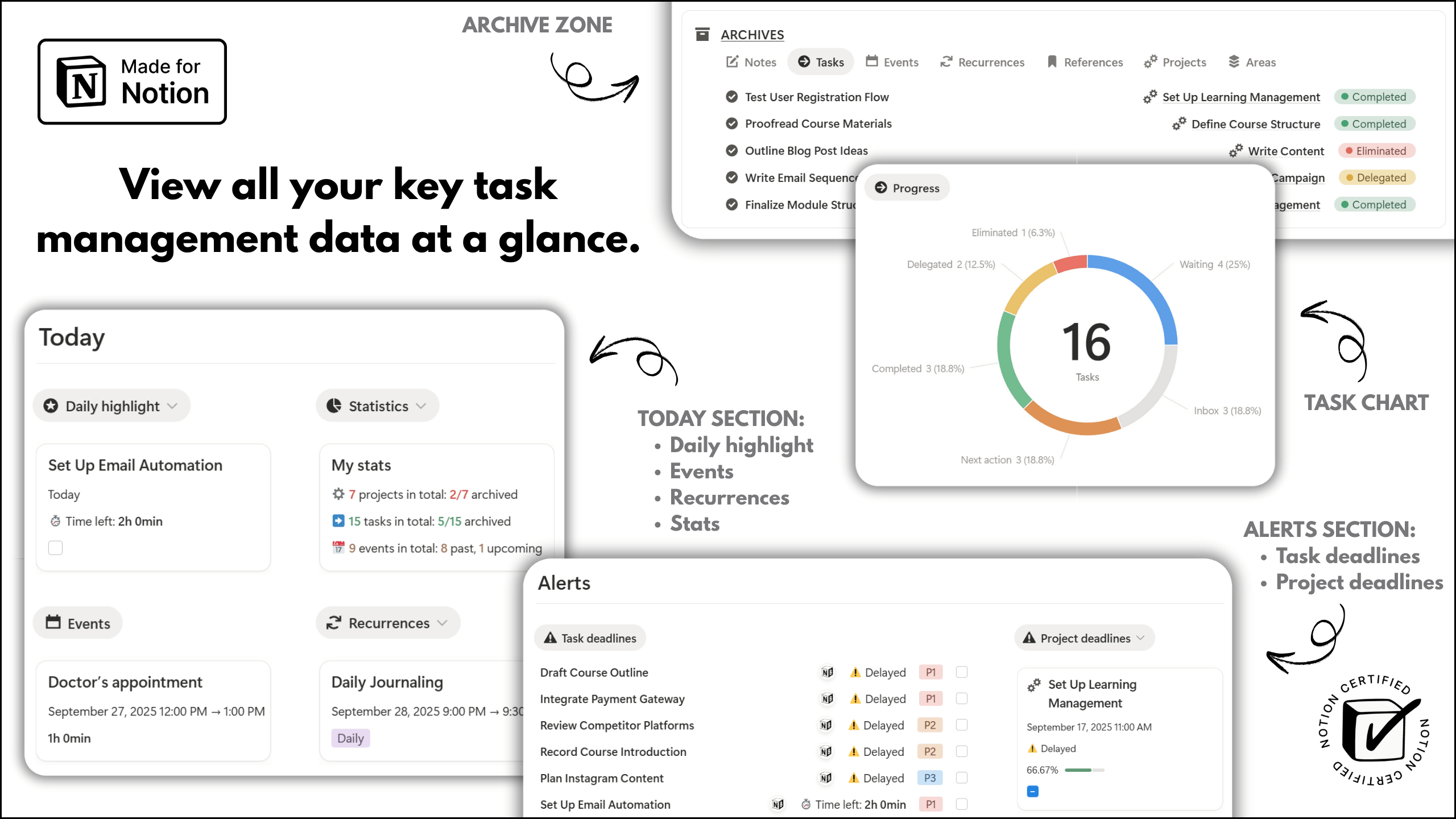 ✅ Automatically gather all your archived notes, tasks, events, recurring tasks, references, projects, and areas for easy access.