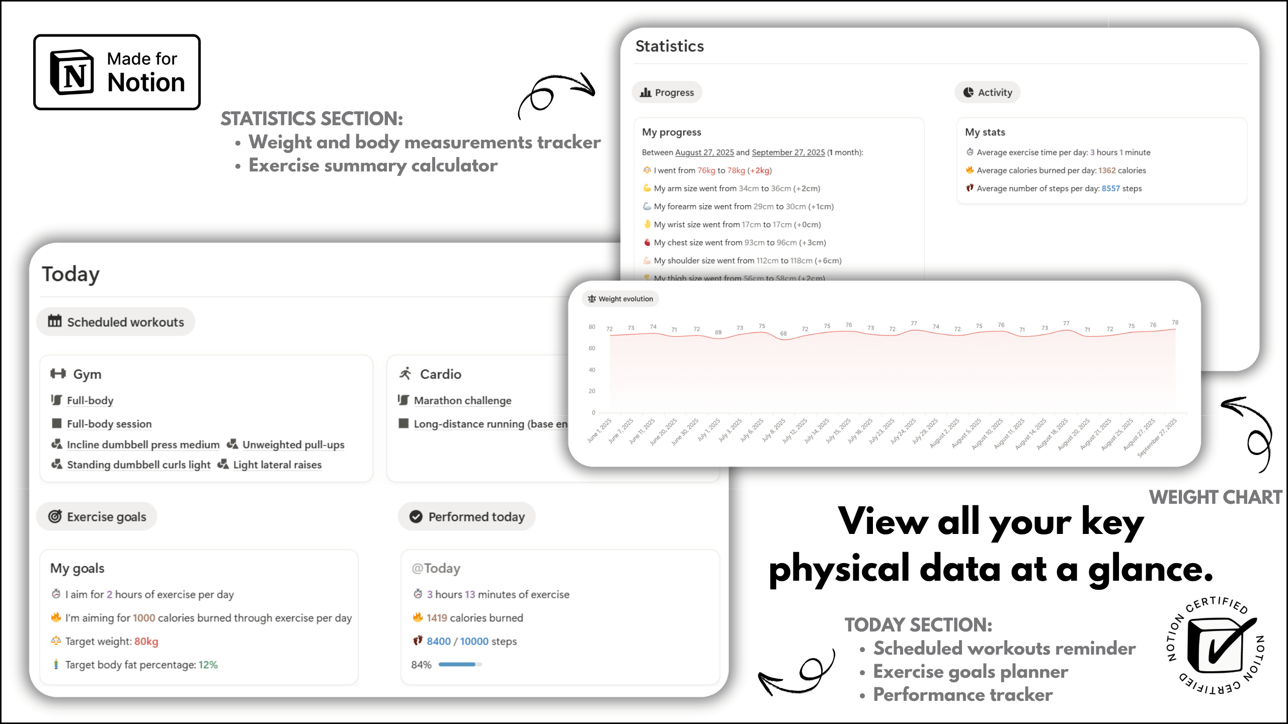 ✅ Track your weight and body measurements to evaluate progress with comprehensive tools.