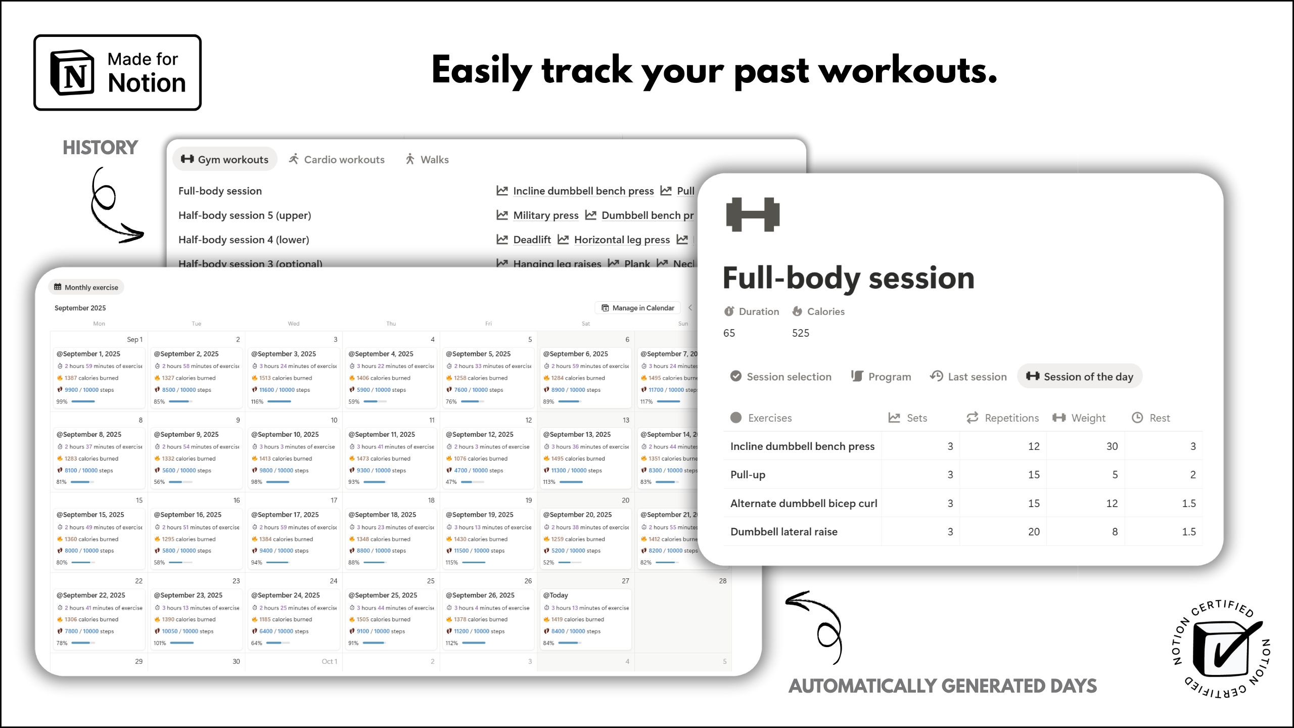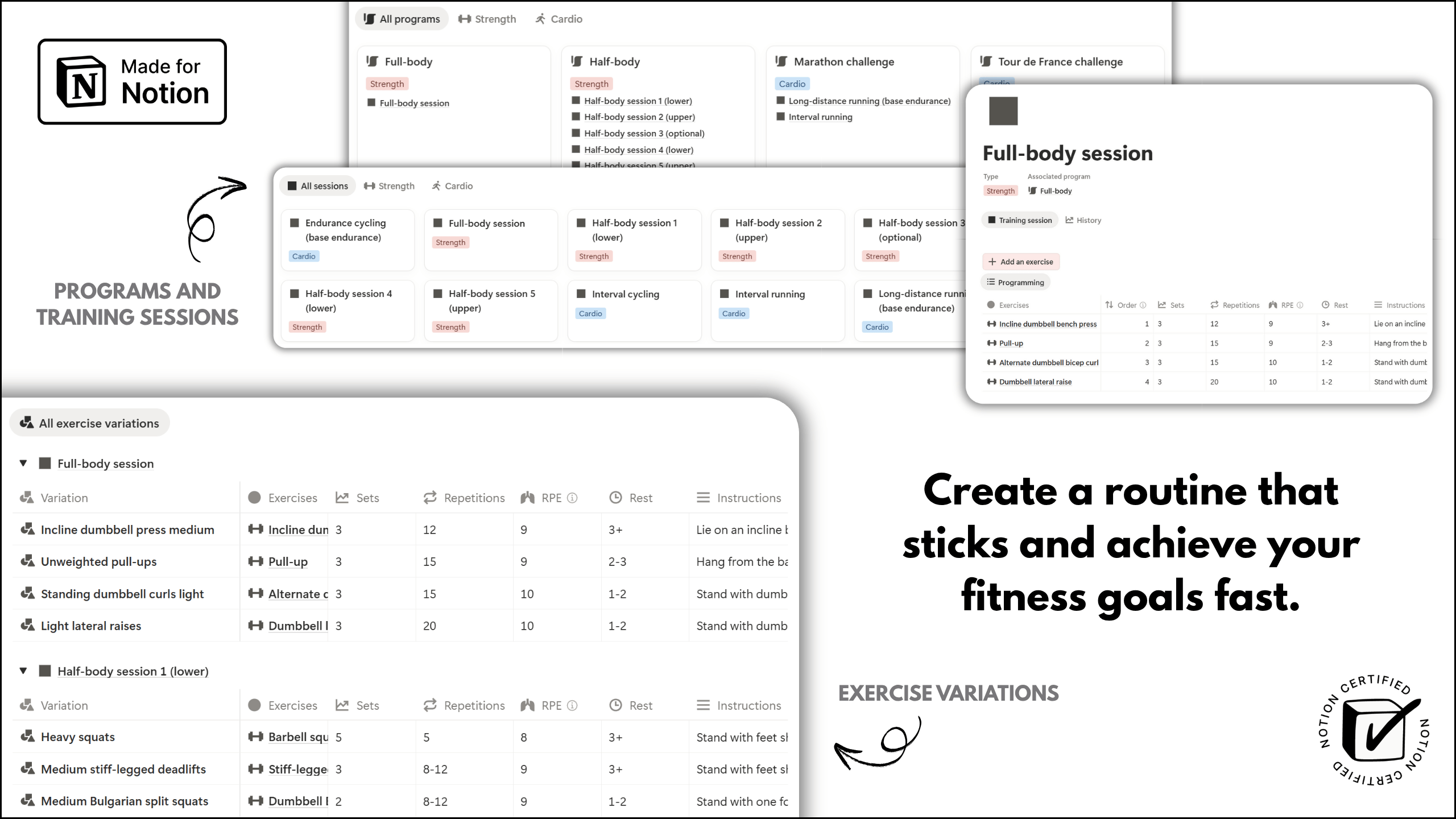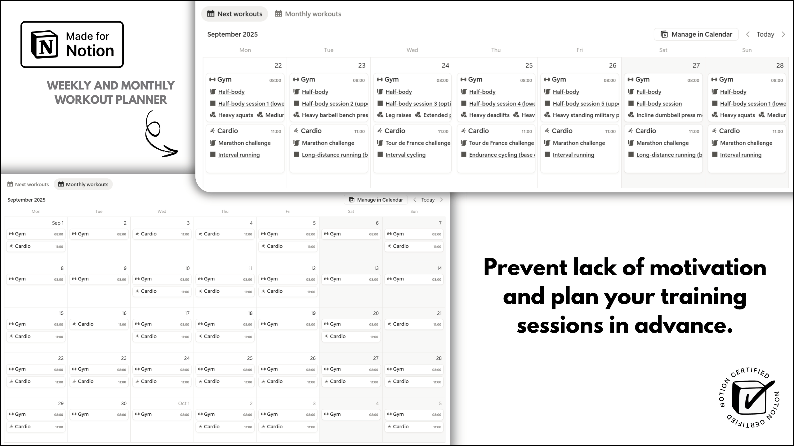 ✅ Leave nothing to chance and organize sessions with specific exercises planned on designated days.