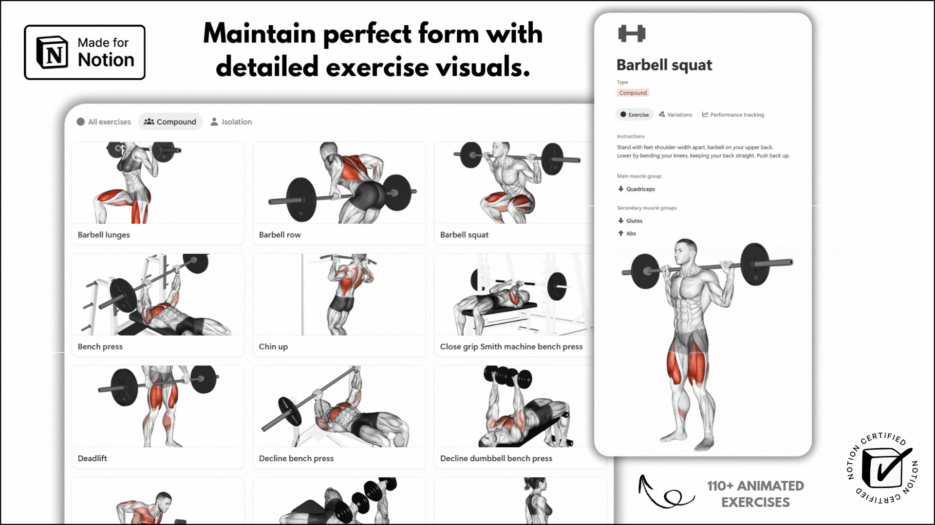 ✅ Access a comprehensive database of animated gym exercises for perfect form.